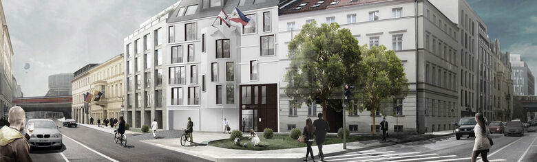 Hoyer Architekten Berlin have developed an individually usable multipurpose concept for the building and inner courtyard. In addition to its embassy and consulate functions, the main building features a cultural center on its lower levels and opens up to an amphitheatre in the rear courtyard section.